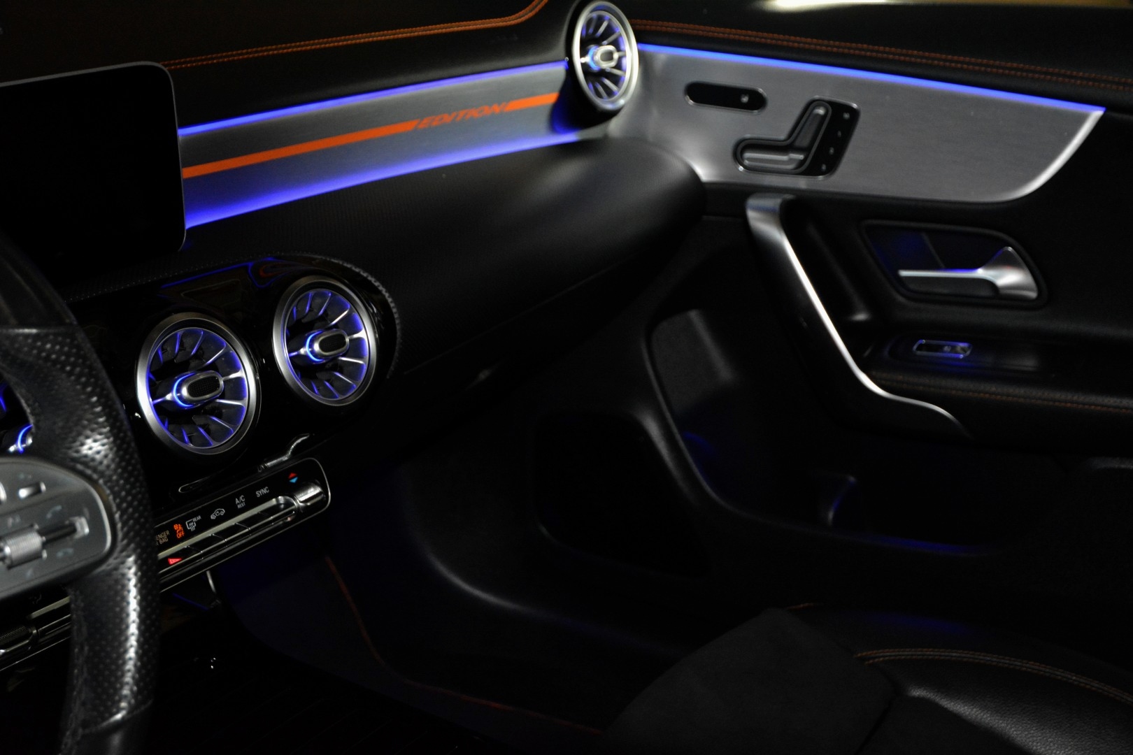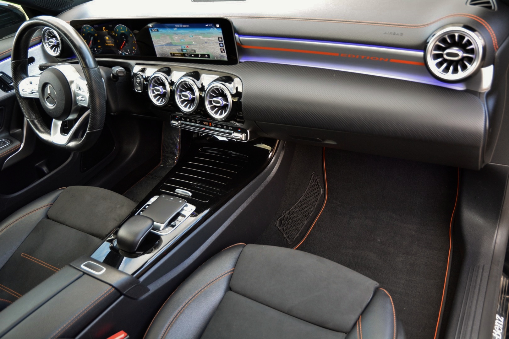 Mercedes-Benz CLA 180 AMG 7G-DCT AMG "EDITION" in het sportieve en klassevolle "Kosmoszwart Metallic" koetswerkkleur - Zwart leder/alcantara AMG Sportinterieur". Exclusieve en sportieve uitvoering gecombineerd met een leuke optielijst ! Rijdt zalig dankzij de 7G-DCT automatische versnellingsbak !!!