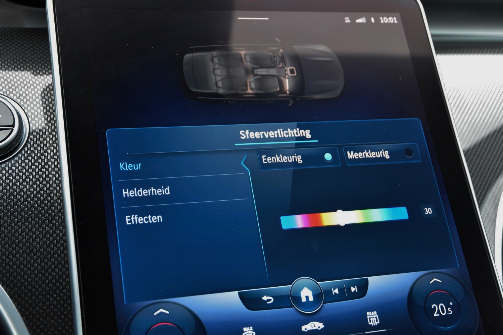 Mercedes C 200 AMG Break 9G-Tronic " LED Koplampen / GPS / Leder / Big Screen / Automatische Airco / LED Sfeerverlichting / Premium Soundsysteem / Distronic / DAB Radio / Parkeer Assistent / Carplay / Camera / Panamericana Grille / 02/2022 / 52.331 KM "
